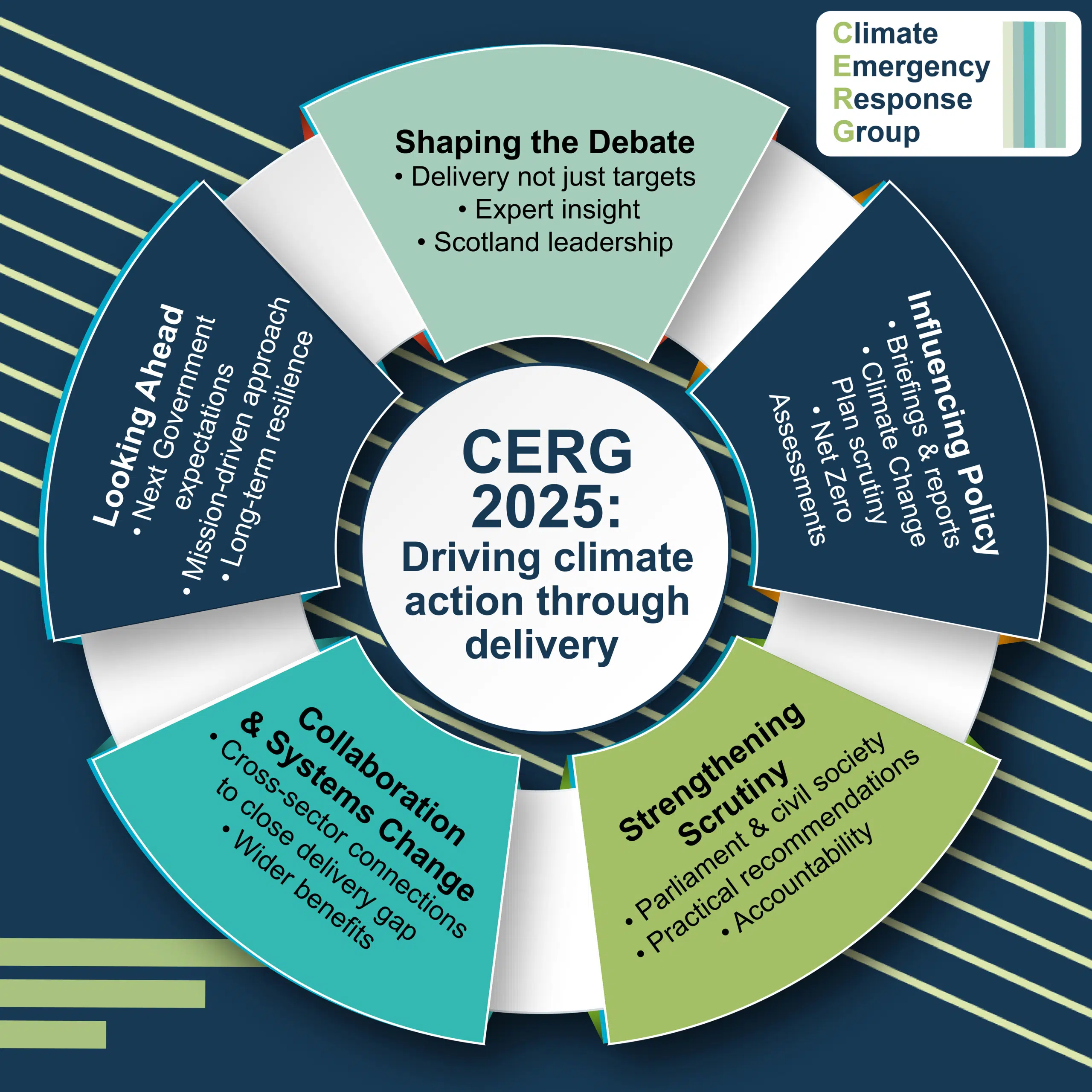 In 2025, CERG focused on five interconnected areas that together helped shift Scotland’s climate conversation from ambition to delivery.